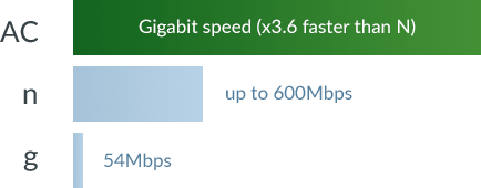 Allows older 802.11b/g/n devices to connect to the 2.4 GHz while two 5 GHz bands can be dedicated to newer, faster wireless AC devices to enjoy seamless bandwidth-intensive applications like HD video conferencing, VoIP and file collaboration.