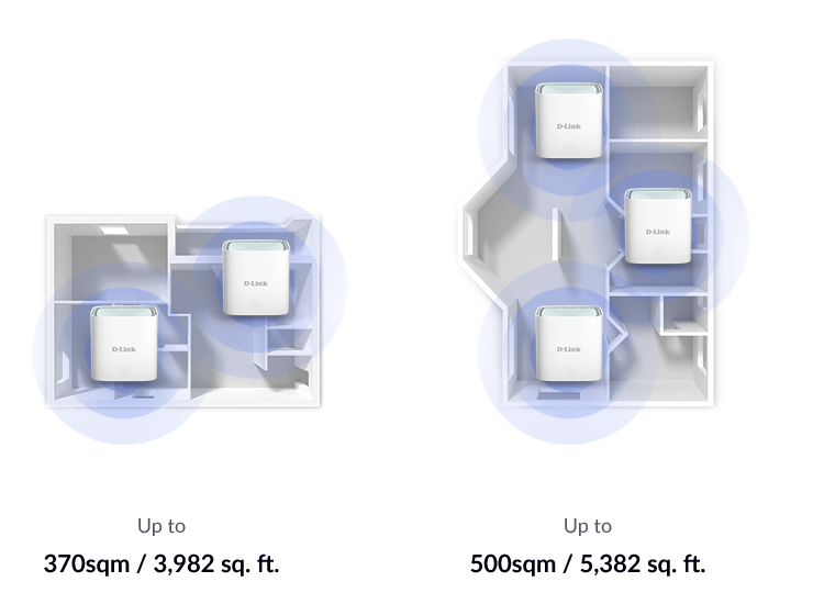 - 2-pack / 3-pack for up to 370 sqm / 500 sqm Wi-Fi coverage
