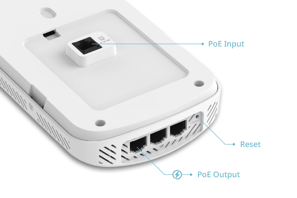 Equipped with one uplink and three downlink Gigabit ports, the Access Point (AP) extends wired connectivity for VoIP phones, PCs, printers, or smart TVs. One downlink port supports PoE passthrough, allowing you to power an additional device without the need for a separate power supply.
