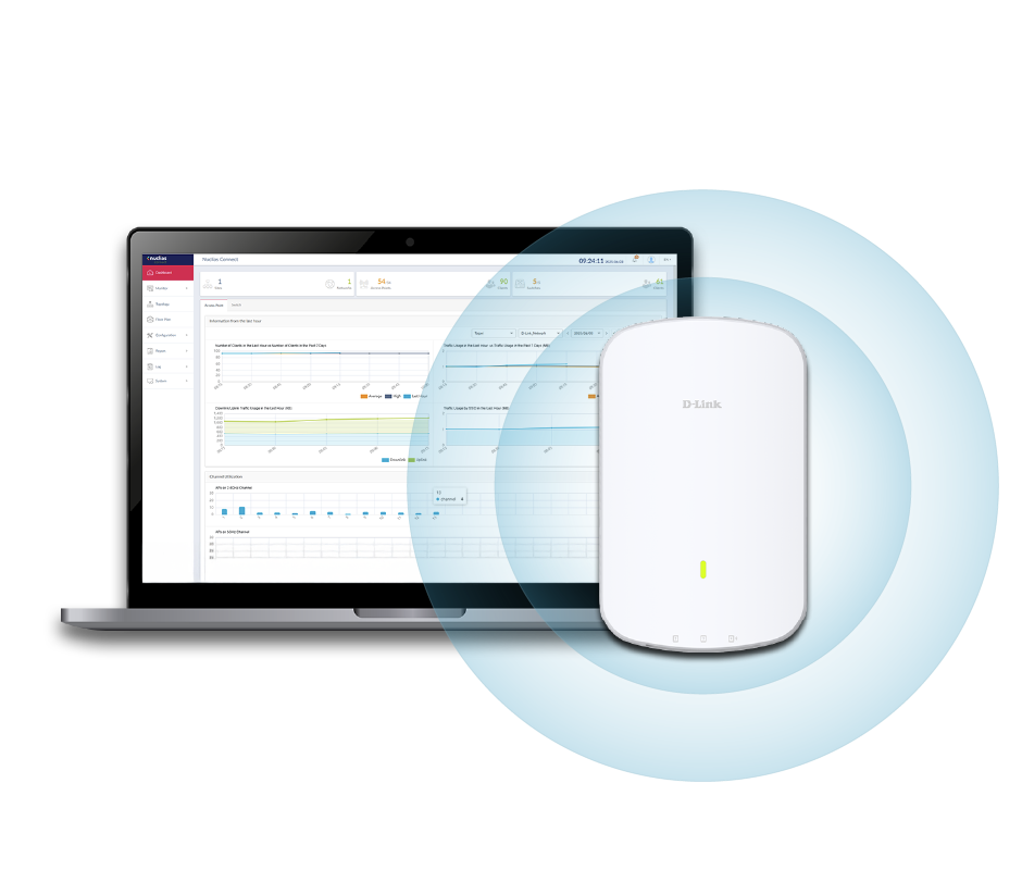 The DAP-X3060W integrates effortlessly with D-Link’s Nuclias Network Controller and management platform, providing centralized, remote network control from anywhere. This solution simplifies management, automation, and scalability, while built-in analytics and reporting deliver actionable insights down to each access point for smarter, data-driven decisions.