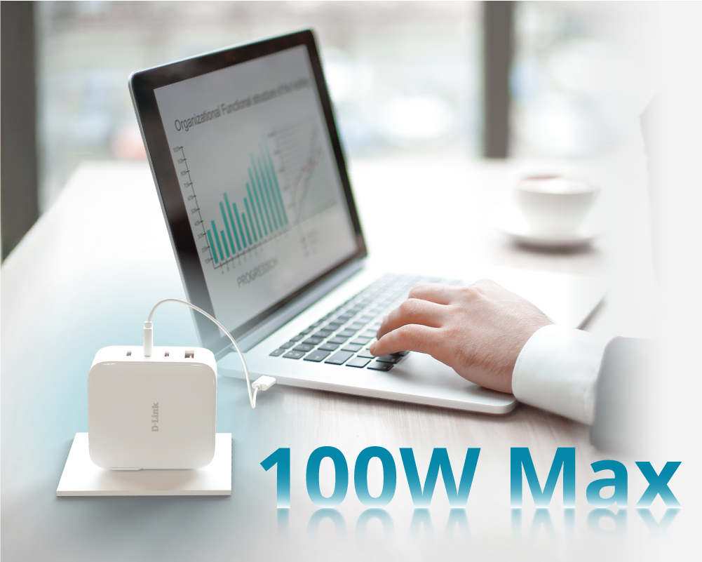 Meet the D-Link DCP-101, a compact and powerful 100W GaN charger designed for work, travel, and everyday life. With advanced GaN technology, it delivers fast, efficient charging for laptops, tablets, and cell phones wherever you go.