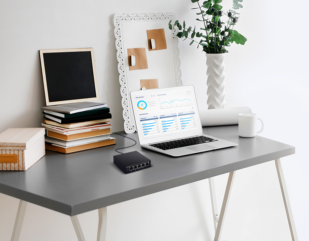 The compact design of the DGS-1005P allows placement in most locations, including those where space is at a premium.
