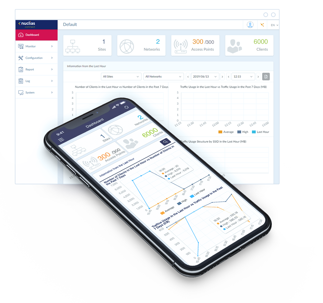 Nuclias Connect enables you to manage and control your network from anywhere with an Internet connection. It provides an extensive understanding of your network and its users through traffic analytics and status reports, which can be viewed at a glance through an intuitive interface on PC, or phone via our app. Insights derived from this traffic data can be used to create business value, and traffic can be viewed across the entire network, to the level of a single AP.