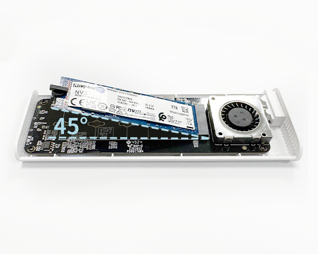 No screwdrivers are needed; just install your M.2 SSD using the included latch, slide the cover to secure the case, and you’re ready to go.