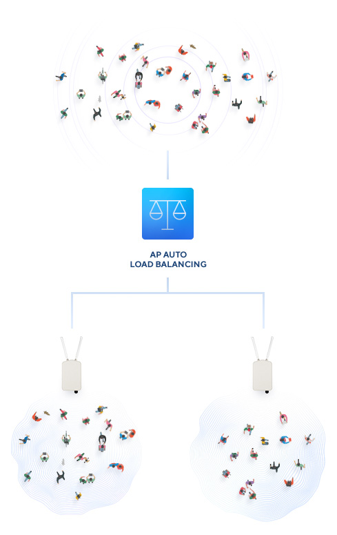 The 2.4 GHz and high-speed 5 GHz AC channels and band steering technology makes your business network flexible by automatically placing clients on the optimal band for their needs like casual web browsing, and data-hungry operations like video streams and large file transfers.