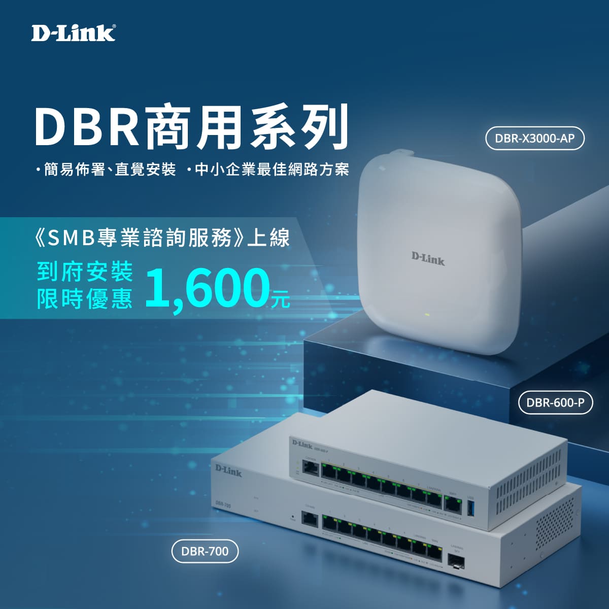 為滿足中小企業快速導入的需求,D-Link 近期更在直營電商平台(momo、PChome)推出 SMB 專業諮詢與到府安裝服務。企業用戶僅需三步驟提交需求,專業技術人員即能提供線上建議與現場安裝,協助排除各類網通疑難。11 月底前申請更享限時優惠安裝費用 1,600 元(原價 4,500 元),讓中小企業以最低成本快速完成網路建置,專注於業務發展,迎接長遠成長。