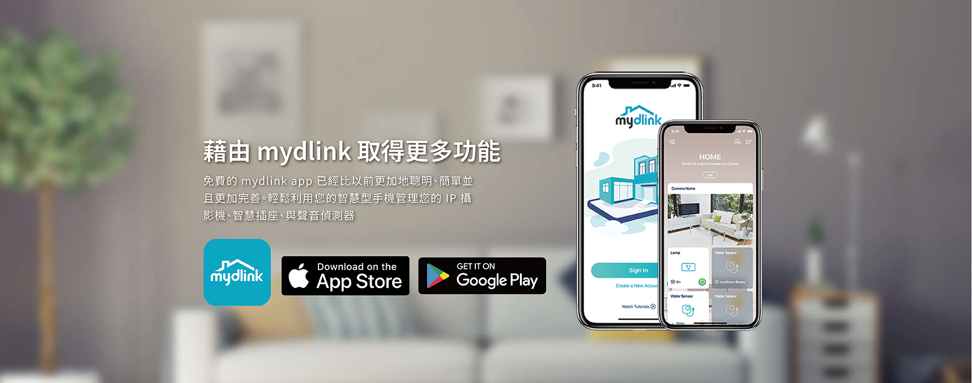 - 隱私模式:輕鬆使用mydlink app關閉您的攝影機