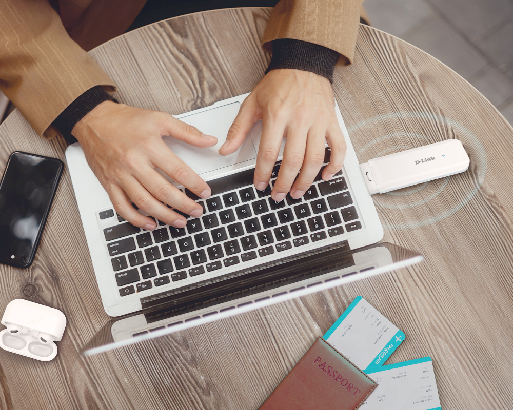 DWM-222W 4G LTE AX300 USB 行動網路卡,內建 Wi-Fi、SIM 卡槽,支援隨插即用,專為行動生活而設計。