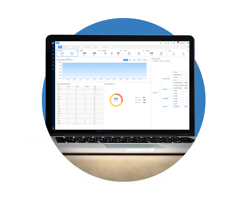 - 實體堆疊可達數量12 台,堆疊頻寬達 1.2 Tbps