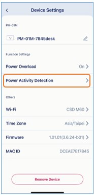 「電源活動偵測」功能可讓您即時監控智慧插座所連接裝置的耗電變化。您可自訂功率閾值與持續時間,當連接裝置的功率長時間高於或低於此設定值時,智慧插座將會自動推送通知。這項功能適合用來判斷裝置是否啟動或結束運作,例如洗衣機完成洗程、或某裝置異常停止運作等情況。