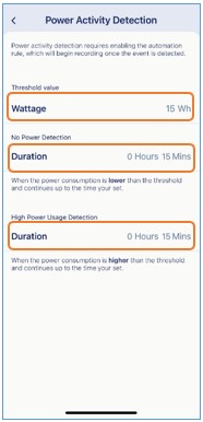 步驟 5: 在「臨界值」欄位中輸入您希望設定的瓦數,並分別設定「無電源偵測」與「高耗電偵測」的持續時間。
