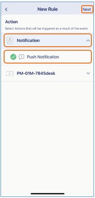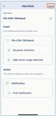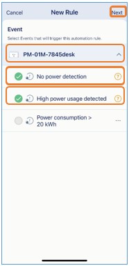 步驟 10: 選擇您的智慧插座,並選擇「無電源偵測」與/或「偵測到高耗電」作為觸發條件,點選「下一步」。