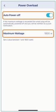 步驟 5: 輸入您希望設定的最大瓦數值,並將開關切換為「開啟」,以啟用自動斷電功能。