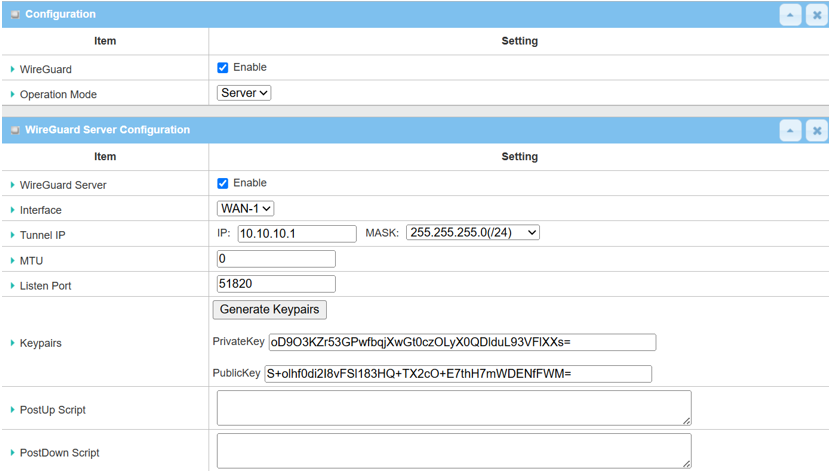 Select the WAN-1 on which the WireGuard tunnel is to be established |