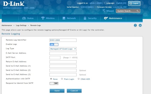 Since the firmware version 4.6.0.2_Ax_WW, the DWC-2000 allows you to set an email alert when an AP fails.