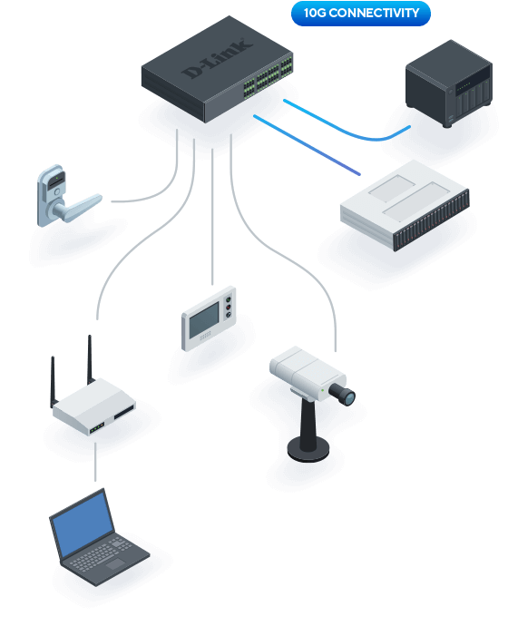 Each switch in the series has four 10G SFP+ ports, which allows the most suitable media type to be chosen and mitigates network bottlenecks. The flexible uplink connections in both 1G/10G speeds deliver on data-intensive tasks.