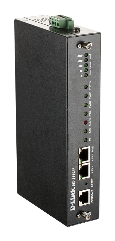 For increased flexibility in harsh environments, the DIS-2650AP can be mounted on a DIN rail or wall-mounted and the option to be powered via Power over Ethernet (802.3at PoE) or by dual DC input.
