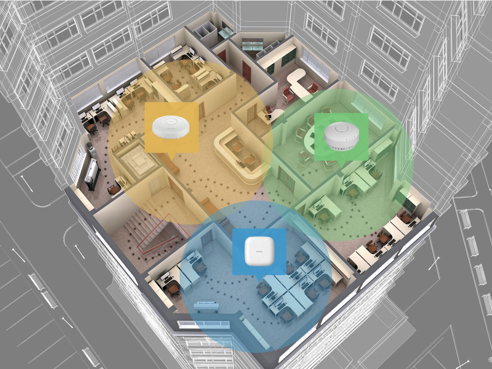 With D-Link’s Self-Healing Wireless network, the Wireless Controller can detect if a surrounding access point has failed and boost their power output to compensate for the failure, minimising the effect of the failed AP.