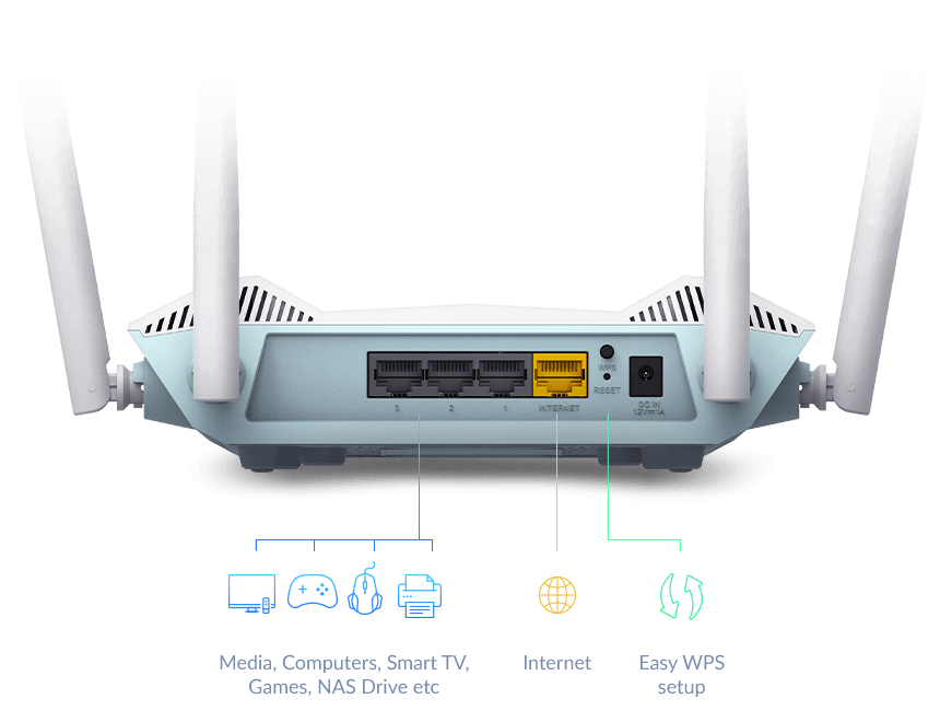 With x3 Gigabit LAN ports, connect up to x3 wired devices, for speeds up to 10x faster than standard Fast Ethernet connections. Now you enjoy low-latency and reliable wired connections for your critical devices.