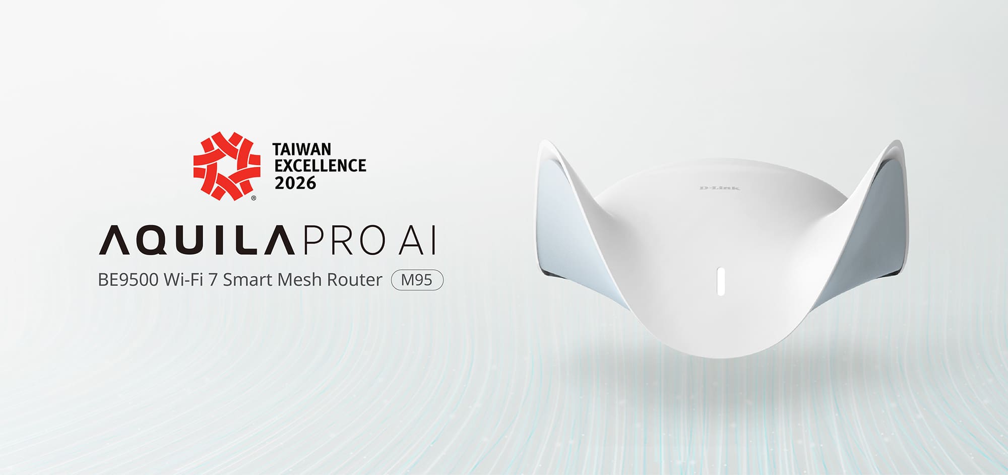 【TAIPEI, Taiwan: November 27th, 2025】D-Link Corporation (TWSE: 2332), one of the global leaders in networking and connectivity solutions, announced that its AQUILA PRO AI M95 BE9500 Wi-Fi 7 Smart Mesh Router has received the 34th Taiwan Excellence Award. The recognition follows the M95’s recent 2025 Red Dot Award for Product Design, adding another major achievement to D-Link’s next-generation home networking portfolio and reflecting the company’s continued commitment to ”Made in Taiwan" quality, creative innovation, solution-oriented, one-stop service, and sustainable design.