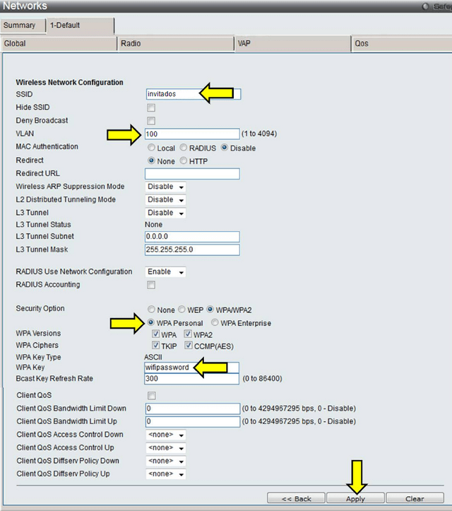 In this example we will demonstrate how to configure the DWS-3160 with two separated by VLAN, one for the internal network of the company SSIDs and other guest users