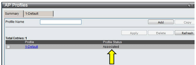 Click on the tick-box next to the profile name and then click “Apply” button to apply the changes to the DWS-3160 on access points