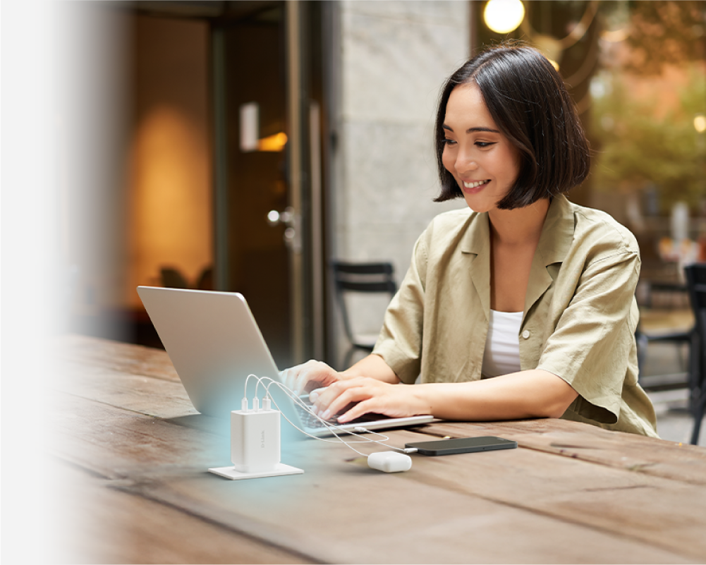 From morning meetings to evening downtime, the D-Link 65W GaN Charger (DCP-651) helps you keep your devices powered up. With two USB-C ports and one USB-A port, you can charge your laptop, phone, and smartwatch all at once*, at home, at work, or wherever the day takes you. One compact charger. Maximum productivity.