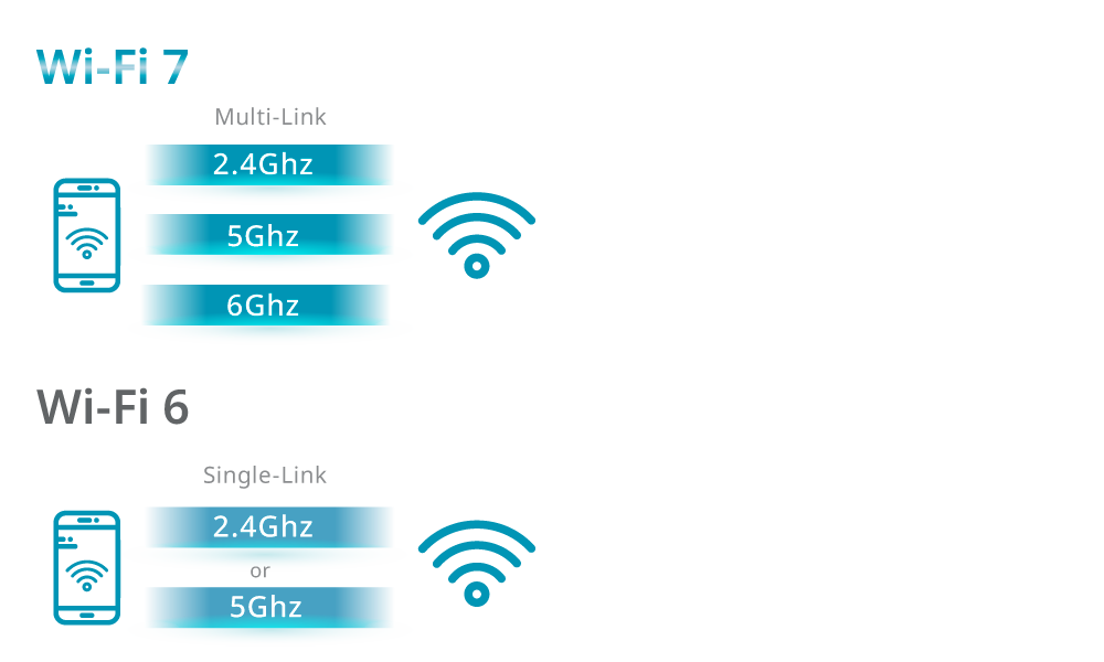 Wi-Fi 7 can assign multiple Resource Units to a single device, unlike Wi-Fi 6 which only supports one at a time. This improves transmission efficiency and allows more flexible use of network capacity.